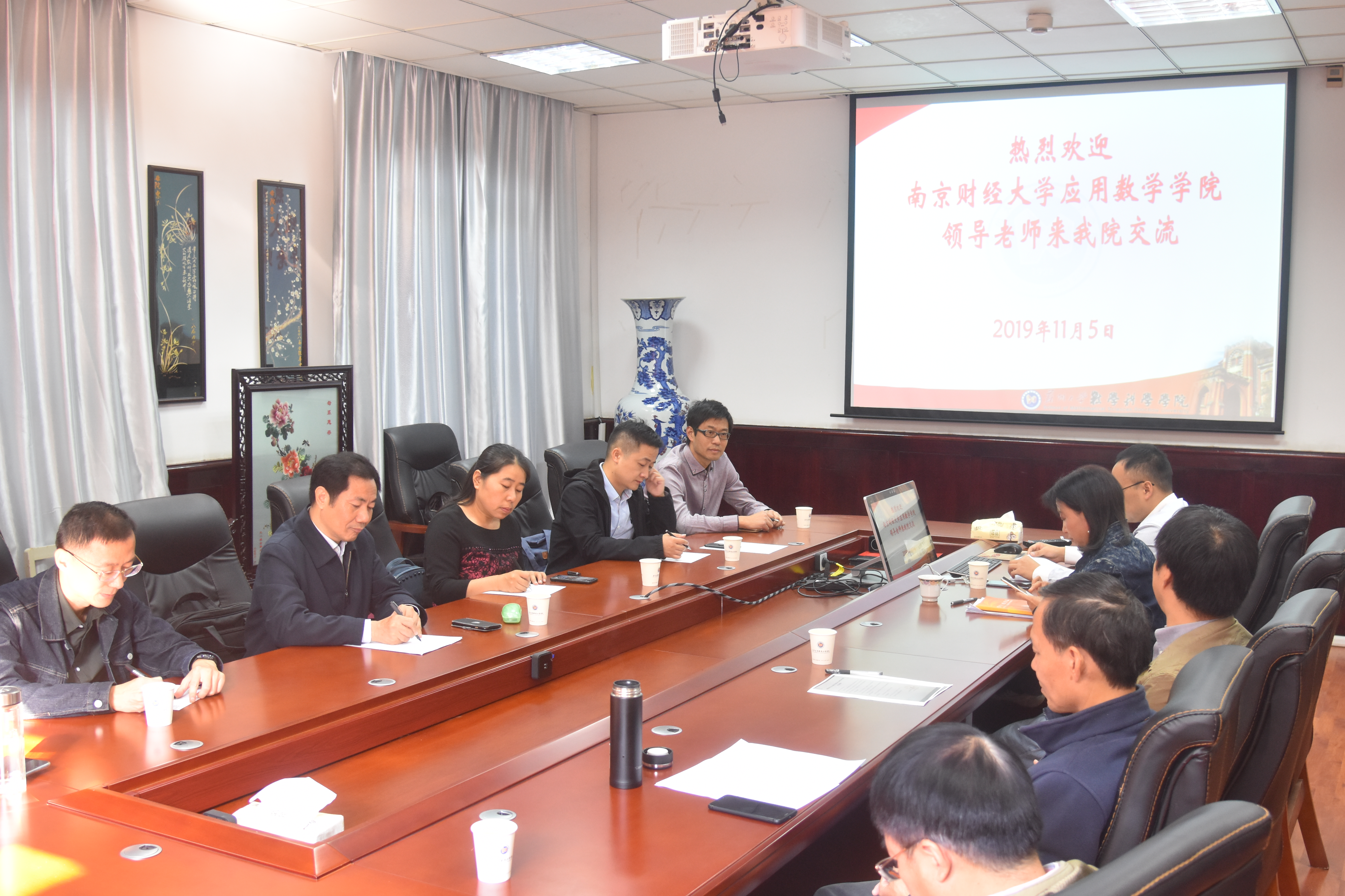 11月5日,伟德victor1946院长王宏勇带队赴苏州大学数学科学学院进行专业调研交流。我校伟德victor1946党总支副书记张杰、院长助理孙成峰、金融数学系主任黄顺林、公共数学系主任吴波、经济数学实验室主任杨靖三,苏州大学数学科学学院院长张影、副院长顾振华、党委副书记蒋青芳等参加了交流会。