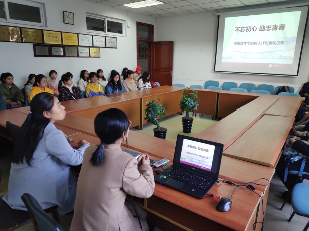 张杰书记致辞。她说,不忘初心,牢记使命是每一位中国人都应该努力做到的;而对于在座的受国家资助的同学来说,不忘初心,励志青春更是我们的代名词。张书记着重强调了国家助学金的意义,于贫困学生而言不仅仅是金钱上的帮助,更是一种激励我们不断前进、不断突破自我的潜在动力。不忘初心鸿鹄志,还与青春共峥嵘。活动中,刘老师以“努力、坚持、自信、感恩”四个词对受助学生寄予厚望:家庭经济困难对于我们来说是短暂的,在国家政策的帮助下我们更应该努力拼搏、坚持自己的初心,做好一名大学生的本职工作,用实际行动回馈学院、回馈学校、回馈国家。其次刘老师详细介绍了本次国家助学金的评定细则,做到公平公正、有理有据。筑信念之基,把精神之舵,将一切思想落实到行动之上才是至关重要的。刘老师向同学们发放树人计划成绩单,上面包含学习方面、学科竞赛、志愿服务、学校活动等多个模块,并让学生以班级为单位推荐一名树人计划负责人。