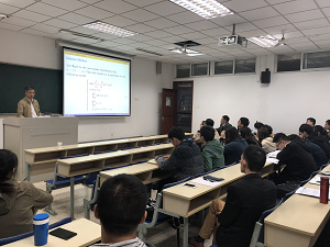 朱元国教授首先以“猎鹰9号”中型运载火箭的回收为背景,为师生介绍了优化理论在实际生活中的重要应用。其次,朱教授分别从静态优化和动态优化两个方面,介绍了优化问题的相关理论。紧接着,朱教授详细介绍了两类不确定投资组合优化问题的模型和求解方法,以及介绍了两类不确定最优控制问题的模型和求解方法。最后,朱教授与在场的师生分享了近期的研究工作及团队的研究成果。
