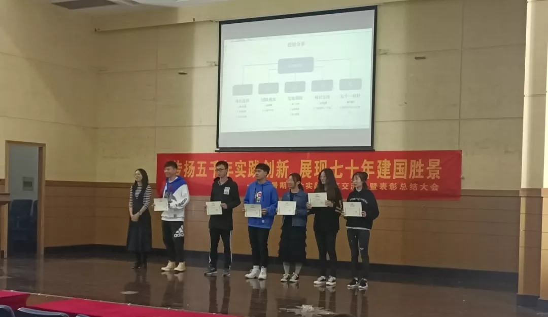 10月15日晚,伟德victor1946分团委社会实践部于德济楼报告厅举办了以“传扬五千年实践创新,展现七十年建国胜景”为主题的暑期社会实践分享交流会暨表彰总结大会。伟德victor1946大一和大二年级的全体同学以及邀请的六个优秀团队代表参加了本次会议,会议由分团委社会实践部王一茹主持。