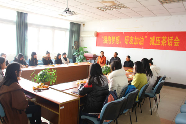 12月19日下午,伟德victor1946在我校仙林校区理工学科楼534会议室举办了”拥抱梦想,研友加油 ”减压茶话会。伟德victor1946的党总支书记常根发老师、党总支副书记张杰老师、学工办主任张文文老师和伟德victor19462013级报名参加考研的同学们参加了此次活动。