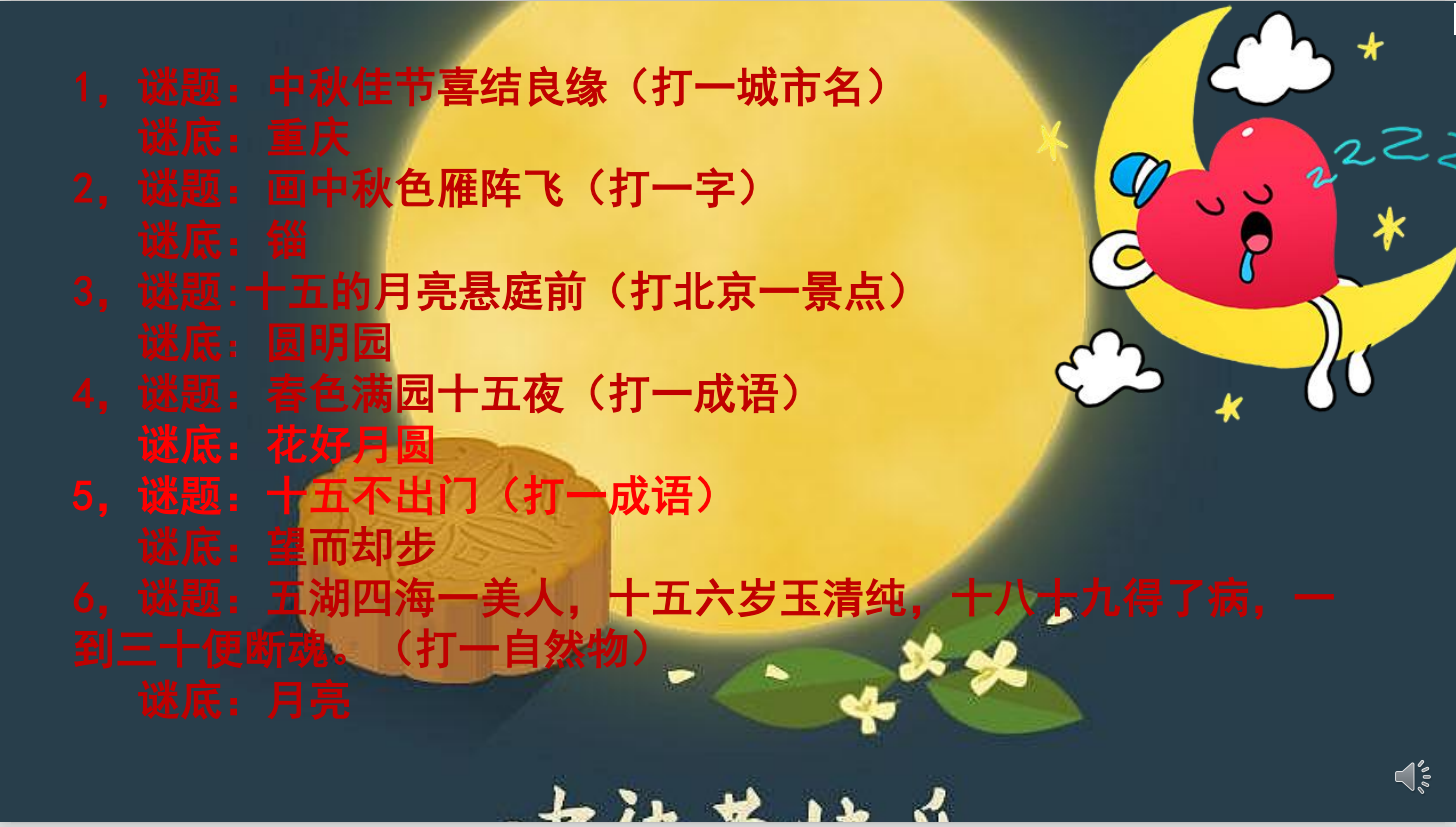 9月17日晚,我院开展了以“中秋意满满,真情谜中知” 为主题的欢度中秋猜谜语送祝福线上活动。