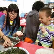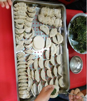 过了近一个小时,博爱的志愿者们陆续来到托养中心,他们带来了饺子皮与馅料,准备给孩子们做一顿丰富的午餐。我院志愿者们在完成自己的工作后,热情的加入他们。有些志愿者并没有包饺子的经历,但通过学习,能够又快又好的包出满意的饺子。经过忙碌,孩子们吃上了热乎乎的饺子,各个脸上洋溢着幸福与喜悦。