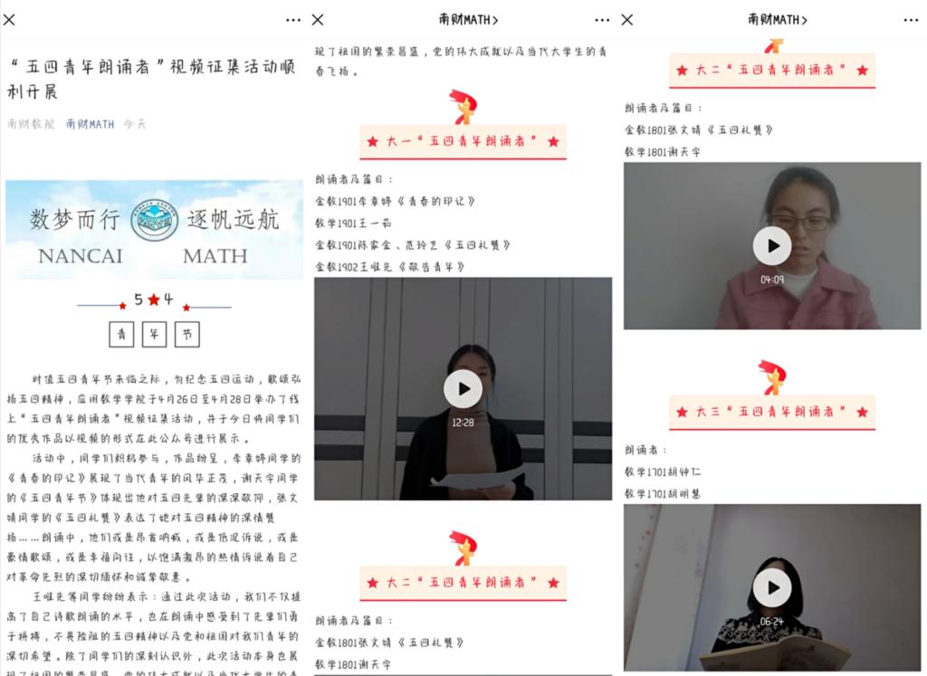 时值五四青年节来临之际,为纪念五四运动,歌颂弘扬五四精神,伟德victor1946于4月26日至4月28日举办了线上“五四青年朗诵者”视频征集活动,并于5月1日将同学们的优秀作品以视频的形式在学院公众号进行公布。