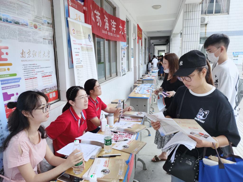7月26日下午14点,团队成员赶到南通大学附属中学进行招生宣传。考生和家长们都十分热情地询问关于南财的报考情况以及热门专业,团队成员也给出了十分耐心细致的解答。
