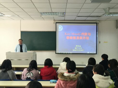 报告中,谭绍滨教授首先介绍了Lie代数和Kac-Moody代数的历史背景、研究现状,简述了若干数学家在该领域所做出的重要贡献和成就。接着,谭教授阐述了Kac-Moody代数与偏微分方程之间的相互关系和应用前景。最后,谭教授用生动的事例说明了数学在经济、金融和管理等学科中的重要应用。