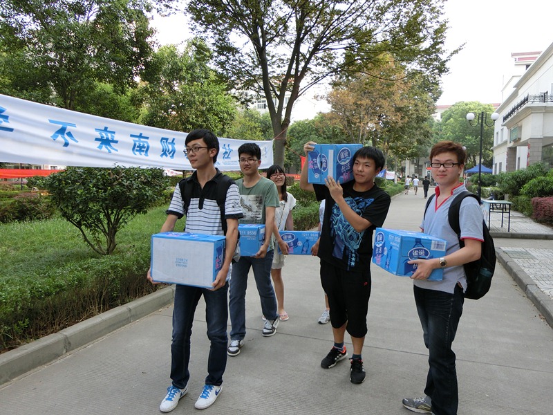 当我院学生会的同学们搬着矿泉水走进军训场地时,大一的学弟学妹们露出了欢乐的笑脸,坐在地上的他们在接过矿泉水的同时也在一直说着谢谢学长学姐。有的孩子拿过水大口大口地喝了起来,有的孩子只是喝了一小口,就满足地擦了擦嘴。他们左右讨论着,前后说笑着,俨然暂时忘却了军训的疲惫。我院学生会副主席沈桐还鼓励同学们坚持军训,客观对待大学生活中可能出现的挫折,并努力去寻找更广阔的天空。