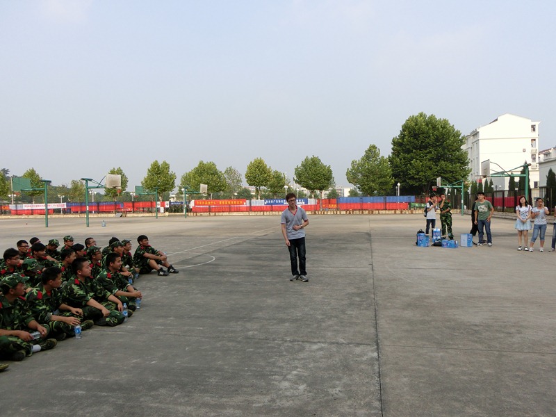 随后,我院学生会文艺部部长沈华辰在学弟学妹们强烈的要求下,一展歌喉。特别的嗓音,优美的旋律使训练场地上传来了阵阵掌声。表演结束后,学弟学妹们还在不停地:“学长,再来一个。”