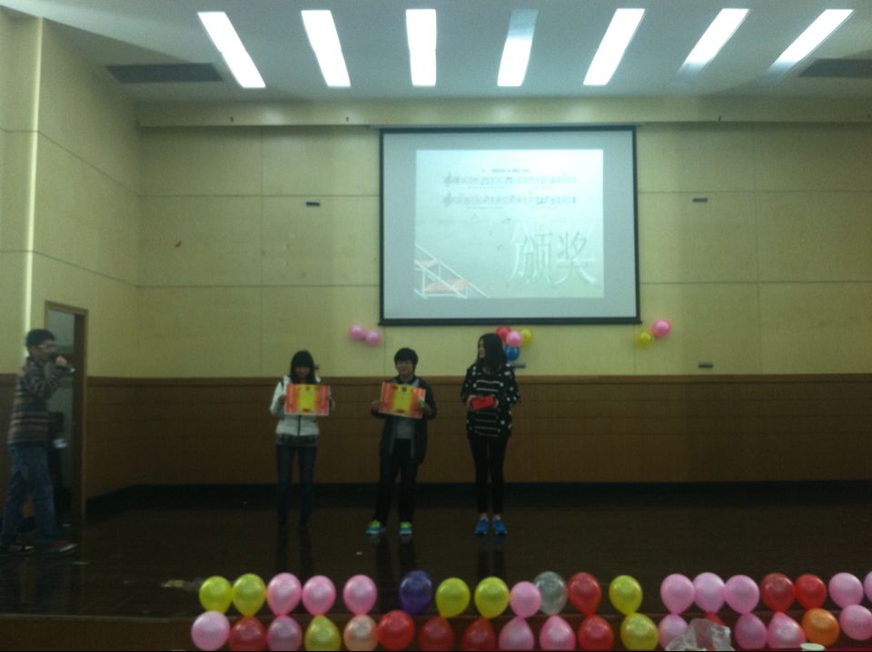 首先,主持人向同学们介绍了比赛规则,第一轮十位参赛选手分别自由选曲,进行演唱,最终淘汰六人。接下来,选手们按抽签顺序开始唱歌,不同曲风带给大家不同的感受,也体会到选手们高涨的热情。第一轮比赛结束后,进入暖场游戏环节,想参加的同学自行上台,演唱含屏幕上显示的字的歌曲,即可成功获得小奖品。场内气氛活跃,大家激烈的讨论着符合条件的歌曲。休息过后,第二轮比赛开始了,规则定为四位选手自选歌曲演唱,按第一轮分数高低分成两组,此时参赛选手只剩下四个,比赛进入紧张的时刻,最终淘汰两名选手。选手们状态极佳,给观众留下了深刻印象。接下来第二轮暖场游戏是观众自行上场演唱指定歌曲,能够唱一句的成功获得小奖品。接下来,是班歌班训的比赛大一大二四个班级分别演唱《夜空中最亮的星》、《青春纪念册》、《一生有你》、《和你一样》,表达了大家团结的情谊。最终决胜局,只有两位实力唱将进行角逐,她们竭尽权利,最终应用数学1301班朱雅菁获得冠军,崔莞歆获得亚军,应用数学1202顾晨峰获得季军。最后,主持人给他们发了奖品,也让观众参与了抽奖环节,歌手大赛圆满结束。