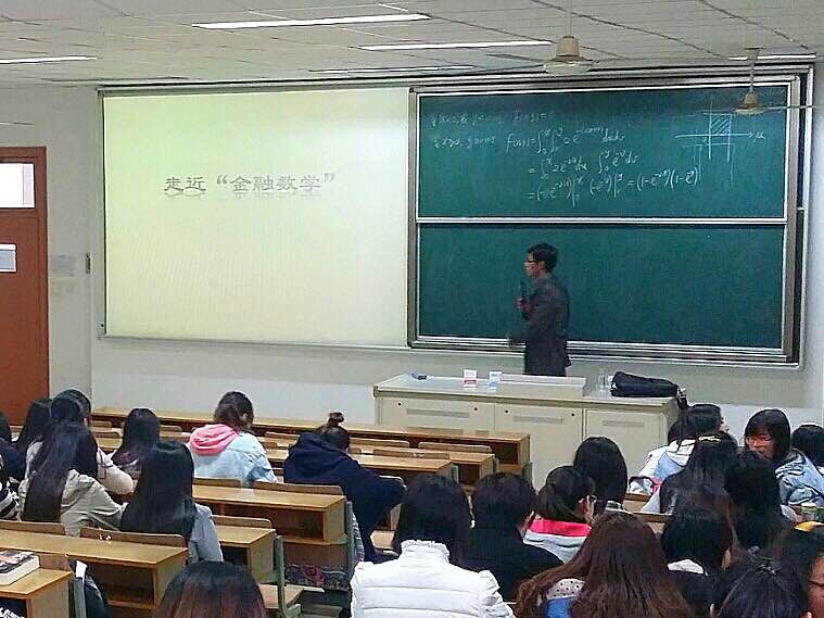 2015年4月15日下午,伟德victor1946在仙林校区教C-306教室召开了“零距离看专业”系列讲座之走进金融数学。伟德victor1946的金融数学系主任黄顺林副教授、伟德victor1946大一大二的学生参加了此次讲座。 黄顺林副教授首先介绍了金融数学的起源以及发展过程,通过生动的事例讲述了金融数学发展中的两次重大变革,以及一些重要模型,例如马克维茨的资产组合理论与布莱克和斯科尔斯的期权定价方程。随后,黄顺林副教授结合具体例子介绍了金融数学中常见的数学理论和方法,主要包括运用随机分析、随机控制、数学规划、微分对策、非线性分析、数理统计、泛函分析、鞍理论、倒向随机微分方程、分形几何等现代数学工具。最后,黄顺林副教授介绍了金融数学的发展方向和金融数学专业的就业前景。此次讲座使同学们受益匪浅,为同学们的专业方向指明了方向。使同学们了解了金融数学在各领域未来的发展前景,同学们也更深刻地认识到各种金融经济学模型在现代金融数学领域中的重要地位。