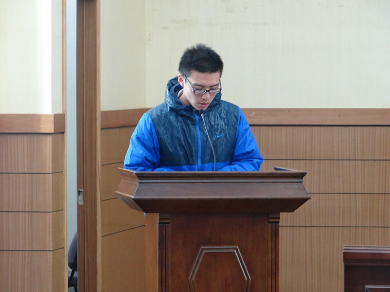 议程第三项由高正杨同学向大一大二同学对党的十八大作简要介绍。高正扬同学从“发展”和“反腐败、倡廉洁”两个方面向同学们作了介绍,鼓励我们大学生,要积极参与政治生活。