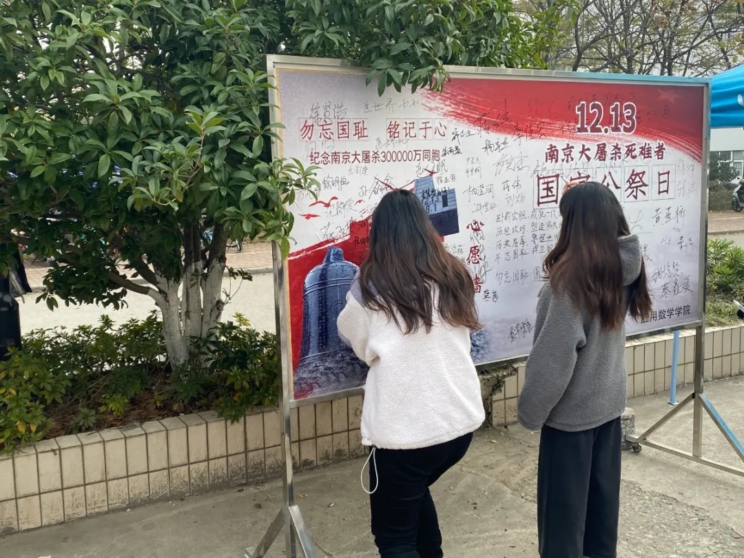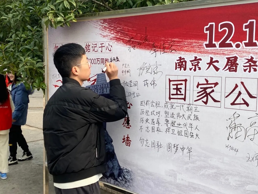伟德victor1946学生会在中苑外场举办了“和平许愿墙”签名悼念活动。在此次活动中,所有海报都以暗色调为主,展示了活动的庄严。很多准备去食堂就餐的同学停下脚步,在展板上签上自己的名字,表达对南京大屠杀死难者的祈福以及对世界和平的美好愿望。活动结束后,学院号召同学们一起在室内为南京大屠杀的遇难者们默哀,以此来缅怀83年前惨遭侵华日军屠杀的30万遇难同胞,希望同学们铭记历史,勿忘国耻。