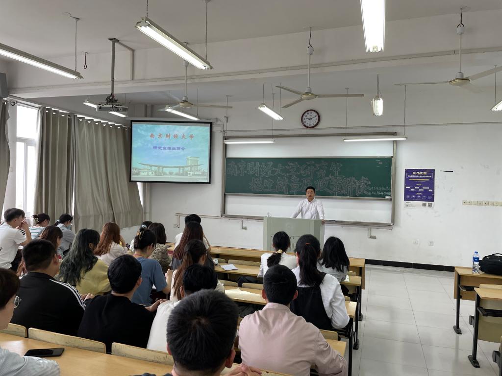 盛兴平院长代表阜阳师范大学数学与统计学院对南财一行的到来表示热烈欢迎,双方就各自学院的发展历史以及培养理念展开了深入的交流,盛院长希望两院在以后进一步加强沟通联系,深化合作,促进共同发展,为更多优秀学子进入bevictor伟德国际1946继续深造提供良好的平台。随后,孙成峰副院长为阜阳师范大学数学与统计学院18级本科生作bevictor伟德国际1946硕士研究生招生的主题讲座。首先介绍了bevictor伟德国际1946的发展历史、办学特色、硕士学位授权点等基本情况,其次介绍了南财大伟德victor1946的基本情况以及学院硕士研究生的培养特色与成效,鼓励阜阳师范大学优秀学子积极关注bevictor伟德国际1946硕士研究生招生信息并第一志愿报考我校硕士研究生。接着,应用数学系主任吴波详细的介绍了伟德victor1946数学一级学科下八个具体的研究方向与内容。在讲座过程中,讲座成员与同学们亲切互动,现场气氛热烈,赢得了在场听众热烈的掌声。