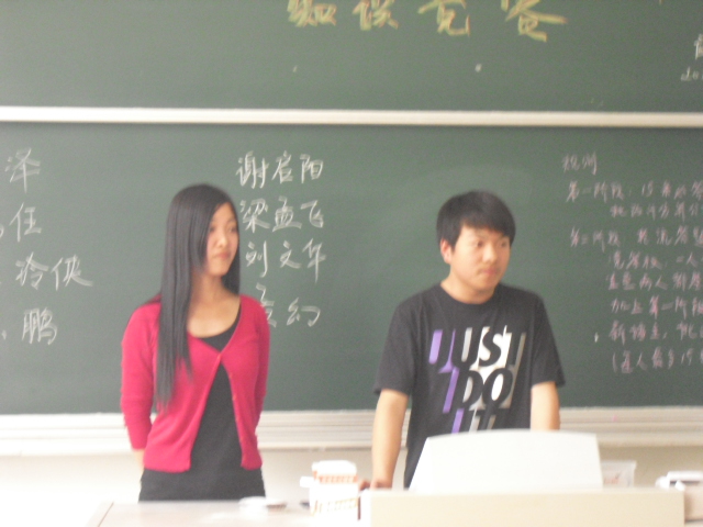第一阶段的初赛,各团支部自行决定比赛时间地点,每个团支部晋级前两名选手参加决赛的比赛,他们是(排名分先后):1101班团支部王玲侠、惠鹏,1102班团支部高任、傅泽、1201班团支部孟幻、刘文华,1202班团支部谢启阳、梁孟飞。各团支部第一名(排名在前者)有3次免答权、第二名有2次免答权。