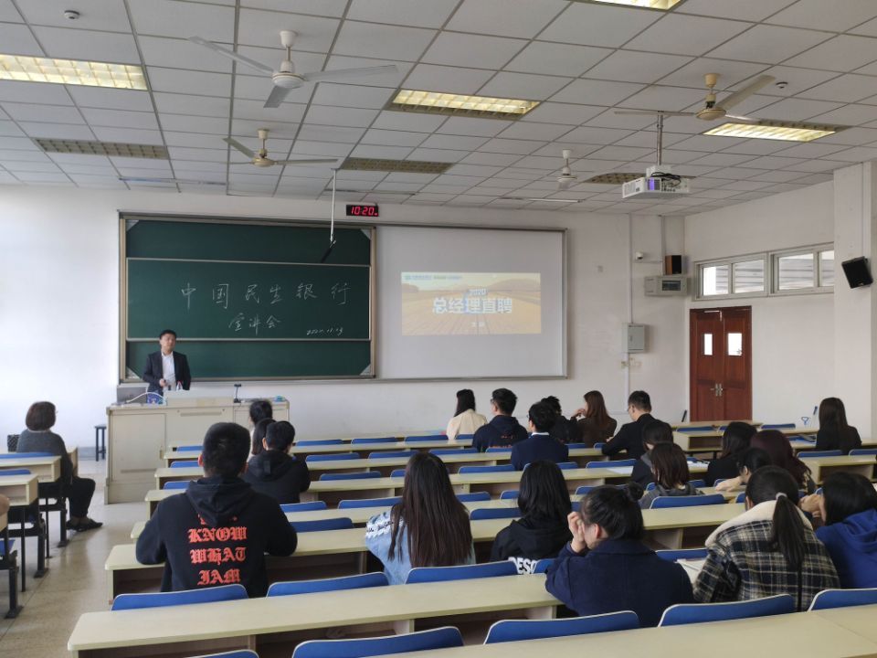 首先,中国民生银行总行个人金融部高级运营管理经理齐振兴进行了远程银行的相关介绍。介绍以图片及视频的形式,展现了银行周边优美便捷的环境,银行内部完善舒适的场地及设施以及丰富多彩的企业文化,为同学们展现了一个良好的企业形象。之后,齐经理简单介绍了招聘的职位,入职流程及实习期间的薪资等信息,分析了选择远程银行的利弊,并表示希望大家认真考虑并做好决定。最后,齐经理鼓励大家在选择就业时要勇敢地选择更好的平台,不怕困难,吃苦耐劳,坚定自己的方向,完成量变到质变的转化。宣讲会同时连线了北京远程云店直播间,带领大家线上参观远程银行。