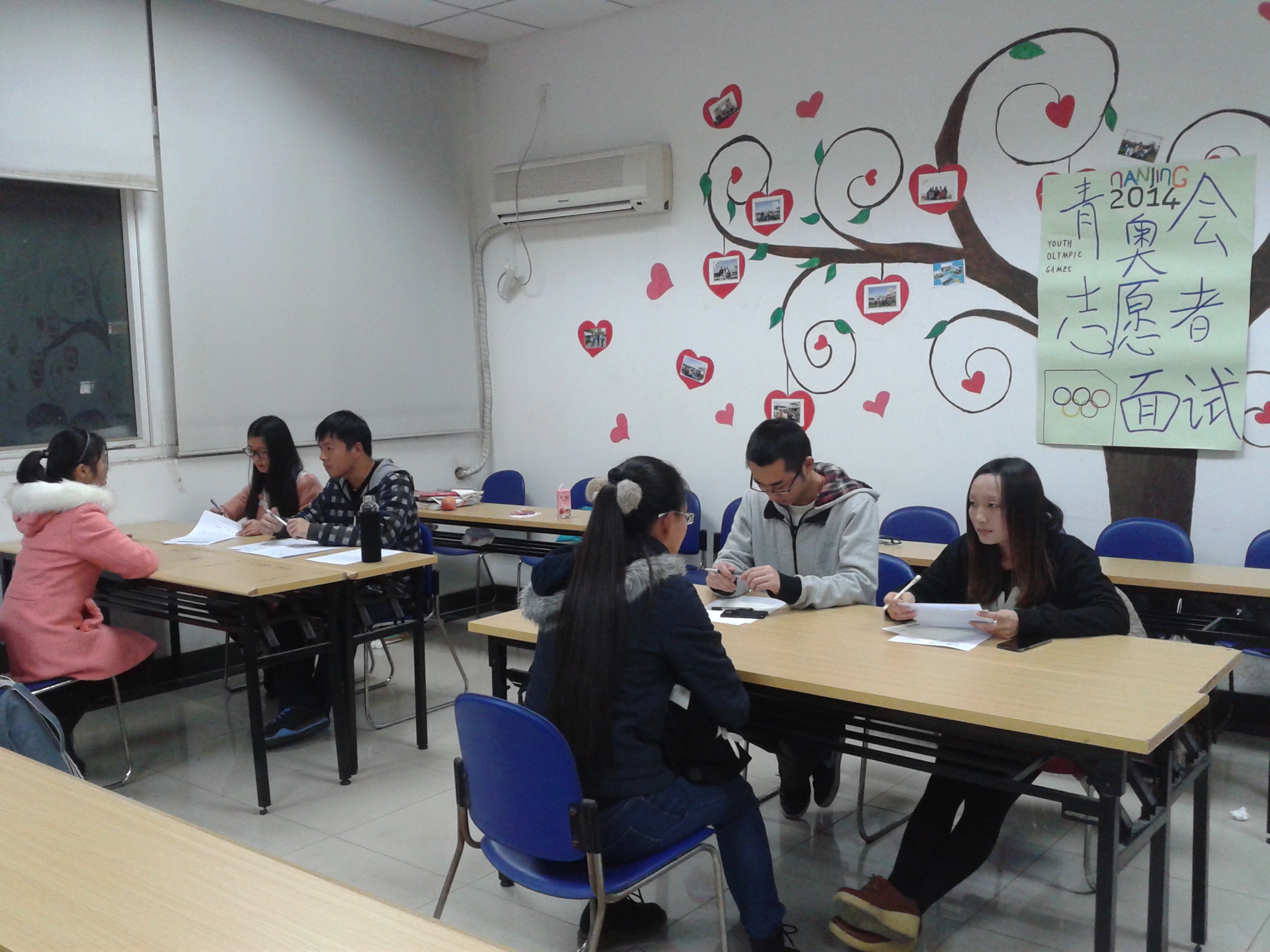 定于2013年12月4日即周三下午5:30的青奥会志愿者面试圆满结束,这次活动的成功举办少不了青志部成员的努力和付出。响应校青志的号召,我们学院举办本次活动,为即将到来的2014年南京青奥会挑选和选拔一批优秀的志愿者。