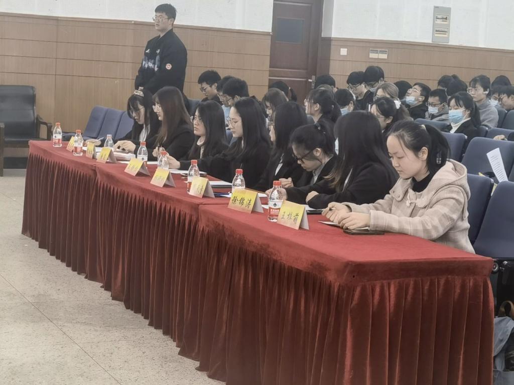 为了使数院团支部团结一致,增强团内成员集体荣誉感,强调团支书的引领作用,11月29日晚,我院团委在仙林校区德济楼二楼报告厅开展了以“述往日光辉,启精彩新章”为主题的团支书双述双评大会,本次大会由秘书处宋焱博、张昕主持,国贸院团委副书记周天童、徐锦涛等八位评委、团委全体成员、21级全体成员、各年级团支书、宣传委员、组织委员,以及各团支部代表参加。