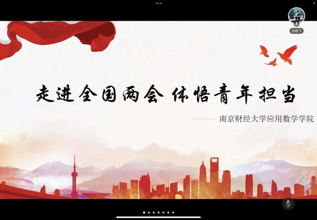 迟日江山丽,春风花草香,一年一度的全国两会伴随着春天的到来,如约而至。为了培养顺应时代发展的、有责任的、有担当的新时代青年,让大学生们树立正确的人生观、世界观,以实际行动践行两会精神,我院于3月28日中午,以腾讯会议的形式举办了以“走进全国两会。体悟青年担当”为主题的新学期第一次信仰公开课。此次信仰公开课由院团委宣传部徐艺洋、季媛媛同学主持,我院团委书记孙晓飞老师、院团委全体成员以及20、21级团小组成员参与本次会议。