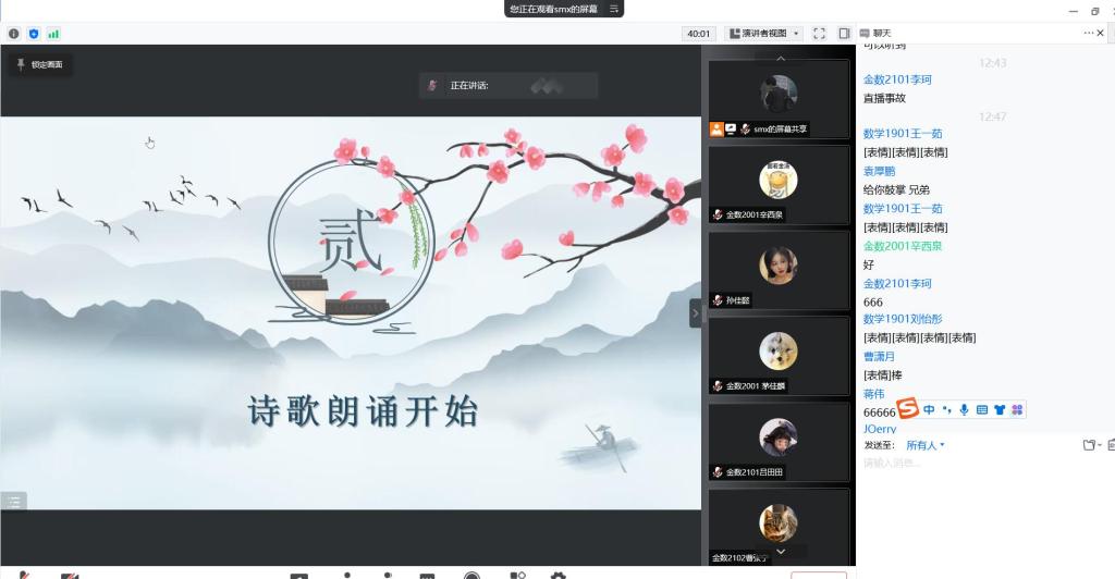 朗诵活动结束后,同学们纷纷在线上聊天室里讨论,赞叹各个队伍的作品,讨论革命先烈的光辉事迹,并用投票的形式推选出了一些优秀的朗诵作品。