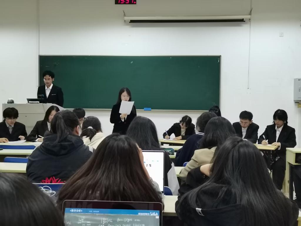 10月25日晚,我院在仙林校区德业楼106教室举行了以“大学生先就业还是先考研”为辩题的辩论赛。该辩论赛由我院辩论队成员熊宇奇同学主持,金融数学2202班全体同学以及辩论队全体成员共同参与。