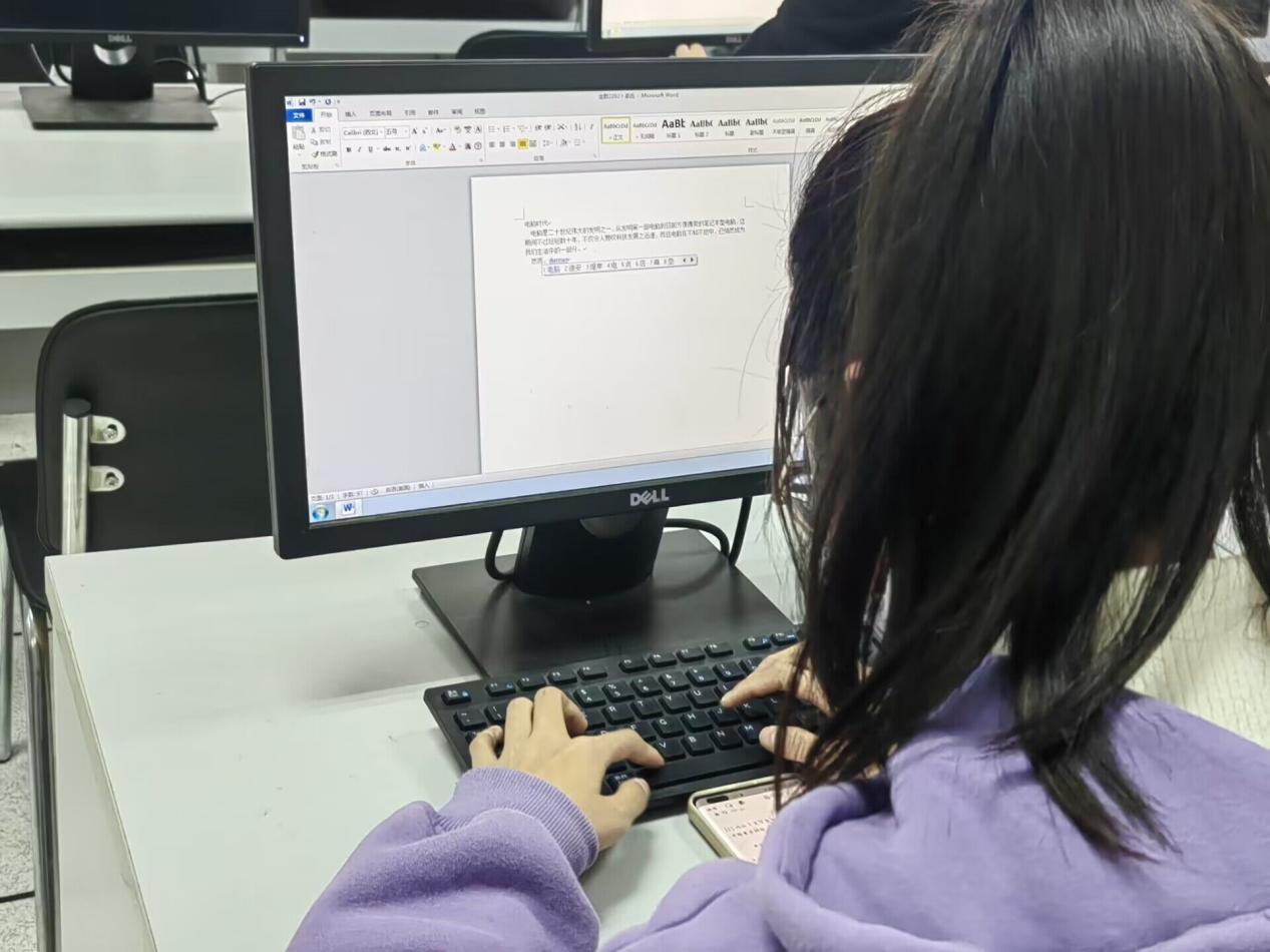 比赛分为抽签分组、上机作答、评分颁奖三个环节。比赛设立word、ppt和excle三个组别,同学们依次抽签,拿到对应组别的操作题和选择题。比赛中,参赛者们全情投入,心无旁骛地投入到自己的题目中。一时间,现场只能听到鼠标和键盘敲击的声音,同学们时而沉思,时而奋力答题,赛场气氛严肃且紧张。