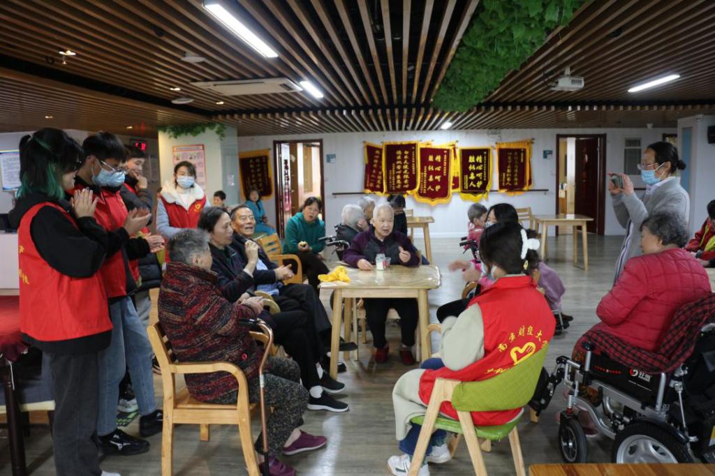 来到护理院后,志愿者们详细询问了老人们的生活情况和健康状况,照顾老人的起居,帮助老人收拾房间,打扫卫生,协助医护人员为老人检查身体。在陪伴老人的过程中,志愿者们聆听着他们诉说着自己的生活琐事以及过往经历,同时也在心里默默记下老人们对青年的殷切期盼与衷心祝福。青年志愿者身上活跃的青春气息与老人们温柔祥和的韵味融合在一起,感染着护理院的每一个人。