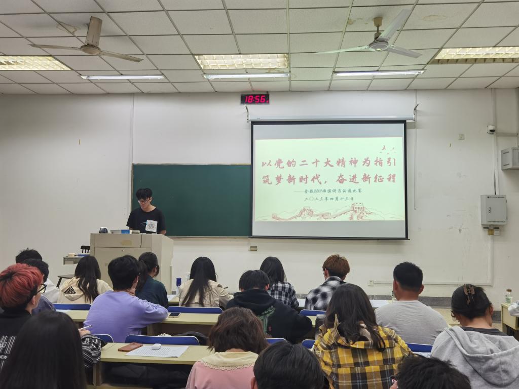 金数2201班、金数2202班和数学2201班分别以“以党的二十大精神为指引,筑梦新时代,奋进新征程” “少年学,国家兴——学习贯彻习近平新时代中国特色社会主义思想” “清风送廉,树品格,修身心”三个主题进行比赛。上台演讲的同学都争取做到了脱稿演讲,谈吐大方、逻辑清晰;台下准备的同学一边认真倾听,一边积极准备,大家都希望能在短暂的三分钟里展现出自己最好的一面。朱美嘉同学讲述了党的二十大精神对自己的指引,从对青春的迷茫到对前路的笃定,她声情并茂的演讲令人赞叹不已,也让党的二十大精神更加深入人心。刘伊曼同学以文化自信为主题,引经据典,用充满活力的语言向大家展示了“胸中有丘壑,立马振山河”的青年壮志。解尧同学在宣传廉洁文化的同时,通过一个个发人深省的案例,号召广大同学树立廉洁品格,清清白白做人,干干净净做事。