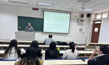 李佩璇教授首先介绍了“稳定均衡点”和“epsilon-稳定均衡点”这两种在随机博弈问题中常用的概念及其在碳减排等领域的应用背景,并回顾了相关的随机博弈模型及主流算法。李佩璇教授进一步指出,这两类稳定均衡点的抗扰动能力较差,而“完美稳定均衡点”可以较好的解决以上问题。但是现有的基于完美稳定均衡点的随机博弈模型及算法研究尚不完善。李佩璇教授提出了一种基于对数障碍函数的可微同伦算法,消去了原模型中较难处理的贝尔曼方程,从而简化了求解过程。数值实验表明,新算法的抗扰动性能明显优于现有主流算法。讲座最后,李佩璇教授回答了师生们提出的问题。参会师生普遍认为此次讲座的内容理论性强且紧扣碳减排等热点问题,对于自己的科研工作具有较强的启发性和指导意义。