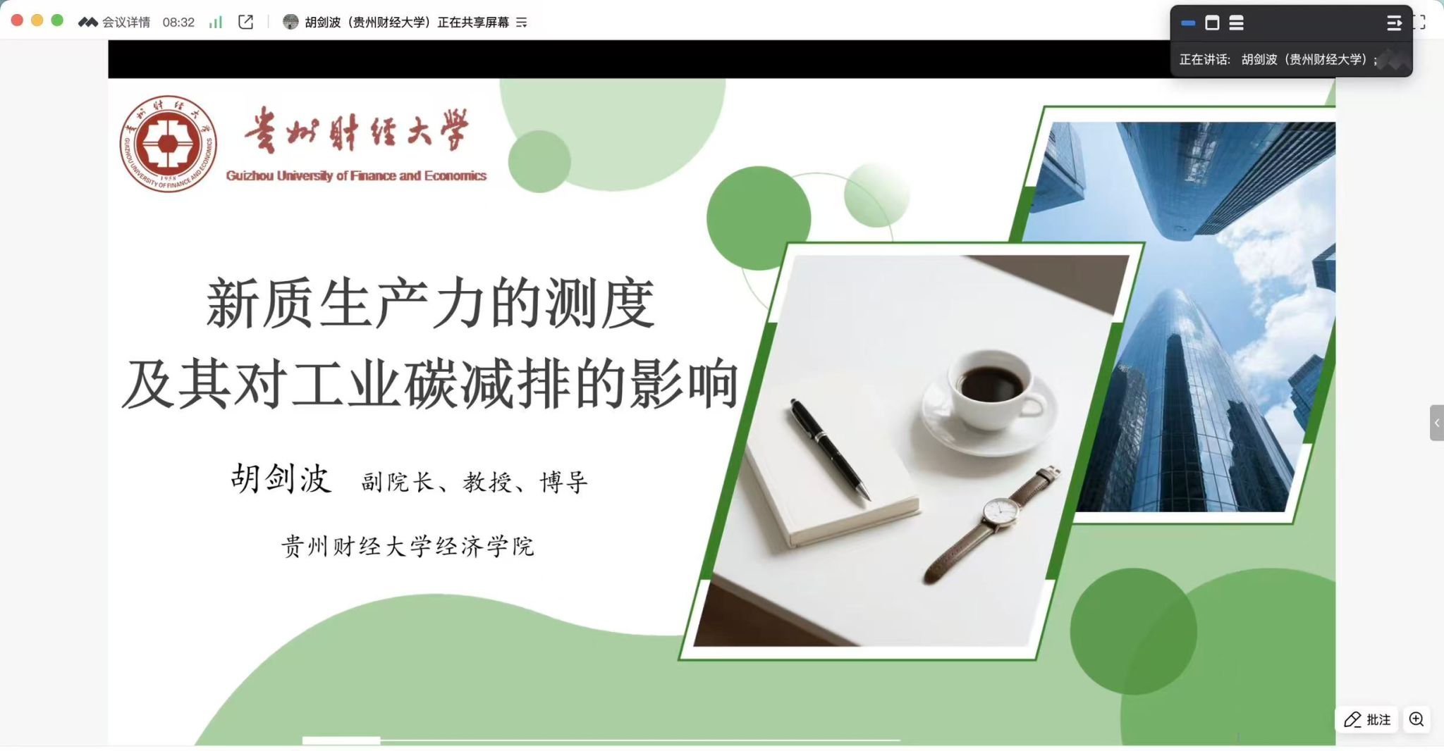 2025年10月13日,我院邀请贵州财经大学经济学院副院长胡剑波教授为师生做了题为“新质生产力的测度及其对工业碳减排的影响”的线上学术报告会,报告由伟德victor1946院长方国昌教授主持,伟德victor1946、经济学院、财政与税务学院教师、研究生及本科生参与了此次讲座。