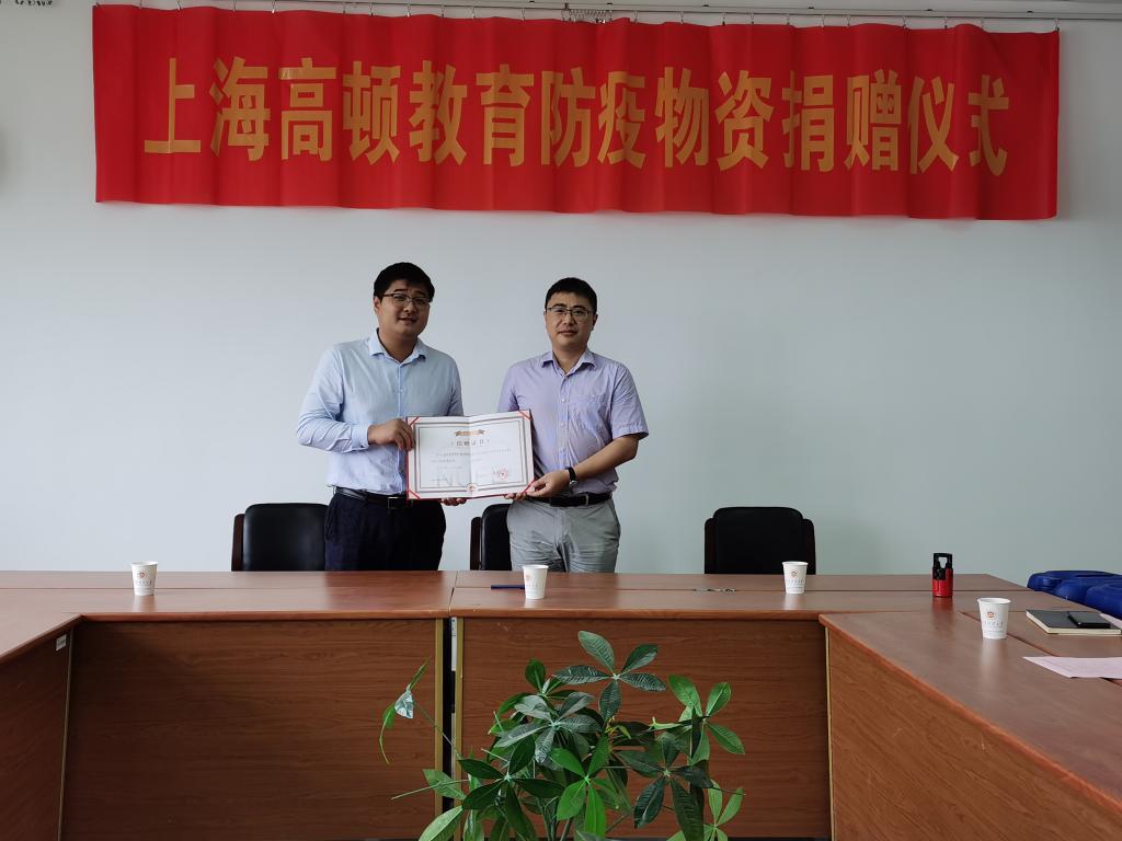 最后,王立峰副处长代表学校为谢斌总经理颁发了捐赠证书并讲话。王立峰副处长代表学校对高顿教育的爱心支援,对学校疫情防控工作的大力支持表示衷心感谢!他表示,高顿教育的爱心之举充分体现了企业的社会责任感和对教育事业的深切关怀,希望高顿教育能够一如既往地支持学院工作,不断扩宽合作领域,加强双方在实习实践基地、创业就业等方面的校企合作!