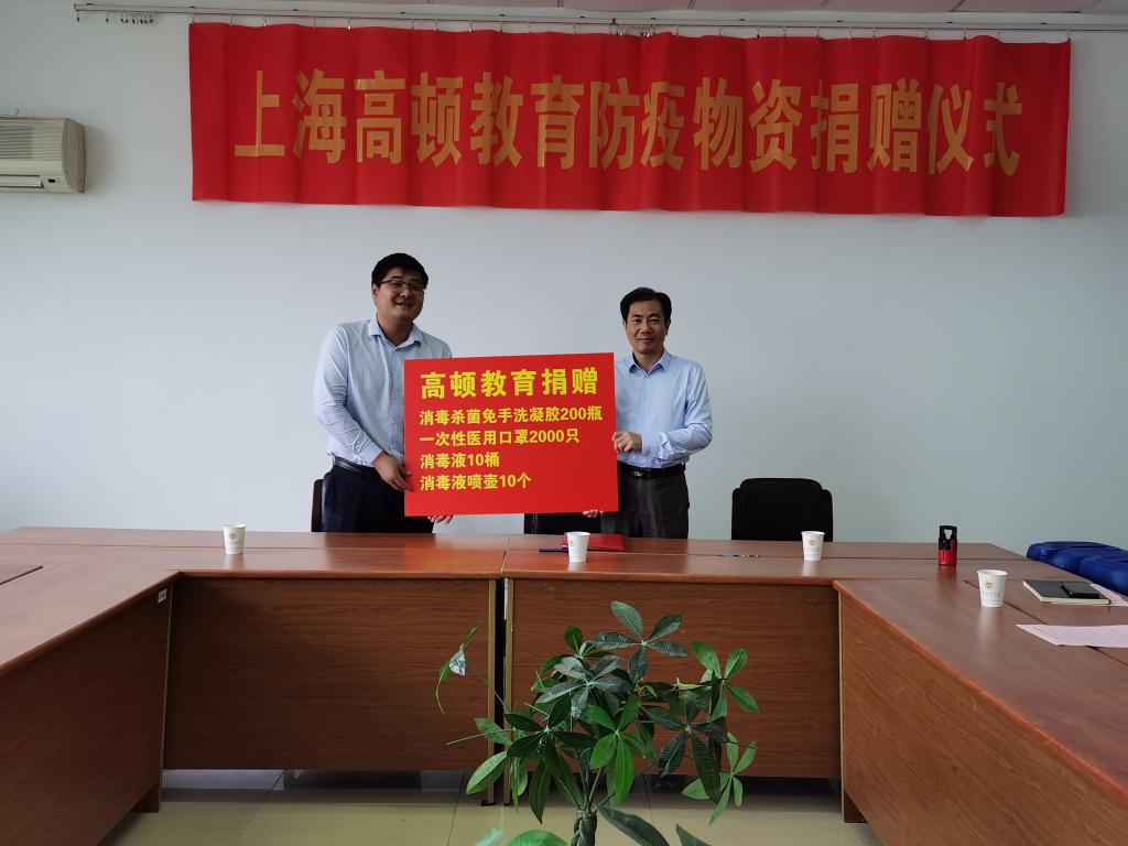 618日上午,高顿教育向我院捐赠一次性口罩、免洗手消毒凝胶、84消毒液等防疫物资,捐赠仪式在仙林校区德业楼534会议室举行,高顿教育南京分公司总经理谢斌、市场经理何伟、市场主管房建兰,高顿教育高校事业部高级销售经理张美娟,校对外联络处副处长(主持工作)王立峰、副处长王冲,学院院长王宏勇等参加了捐赠仪式。仪式由学院党总支书记殷建新主持。