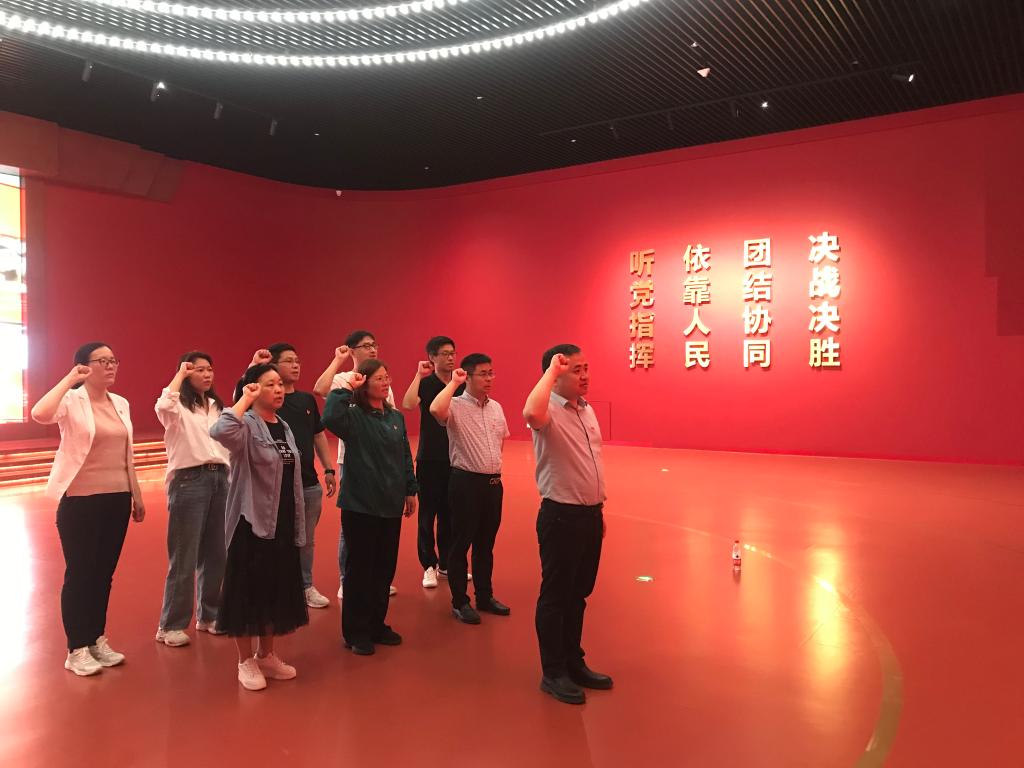 参观结束后,在庄严肃穆的场馆里、在鲜红的党旗前,全体党员紧握右拳,重温入党誓词。铿锵的誓词,坚定的承诺,让每位党员的心灵再次受到震撼和洗礼。
