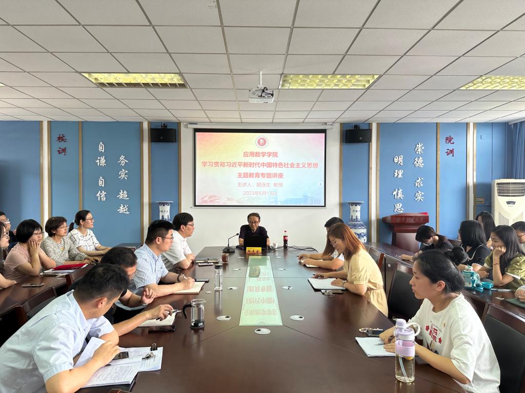 6月13日(周二)下午14:30,我院邀请五老讲师团专家胡连生教授于仙林校区德业楼508会议室开展“学习贯彻习近平新时代中国特色社会主义思想若干体会”主题教育专题讲座。学院领导班子成员,党支部书记,系主任、辅导员、班主任,以及青年教工党员代表、本科生党员代表和研究生党员代表参加专题讲座。讲座由学院党总支书记殷建新主持。