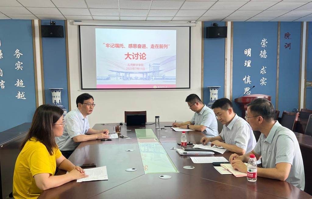 7月11日,根据学校学习贯彻习近平新时代中国特色社会主义思想主题教育工作安排,我院在德业楼508会议室组织开展“牢记嘱托、感恩奋进、走在前列”大讨论。全体院领导、全体党总支理论学习中心组成员参加大讨论。大讨论由院党总支书记殷建新主持。