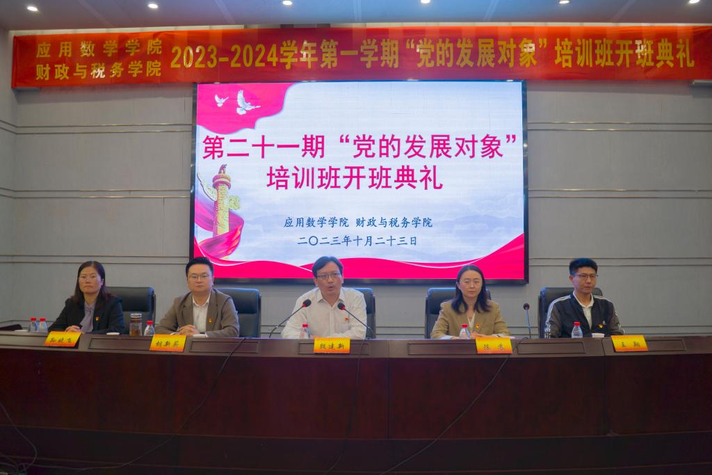 10月22日中午,伟德victor1946、财政与税务学院联合开展的2023-2024学年第一学期“党的发展对象”培训班开班典礼在仙林校区行政楼二楼报告厅举行。财政与税务学院党委书记陈苏、副书记王翔,校团委副书记胡新蕲,我院党总支书记殷建新、副书记孙晓飞以及全体党校学员参加开班典礼。开班典礼由我院总支书记殷建新主持。