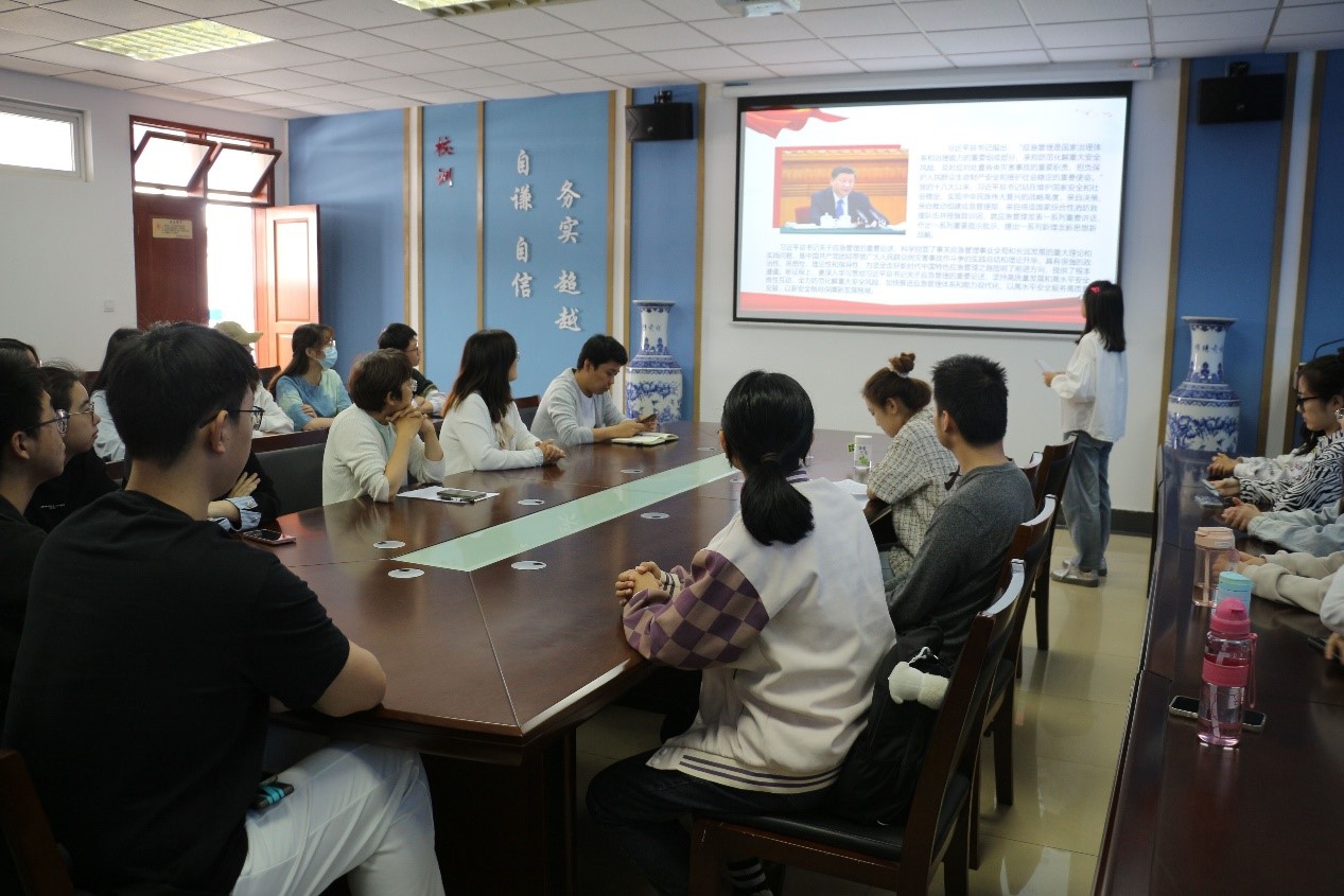 活动伊始,本科生党支部书记卢艳梅老师带领全体成员学习了习近平总书记关于防灾减灾救灾等应急管理工作的重要论述精神,强调广大党员同志要发挥模范带头作用,认真学习,不断提升相应能力。