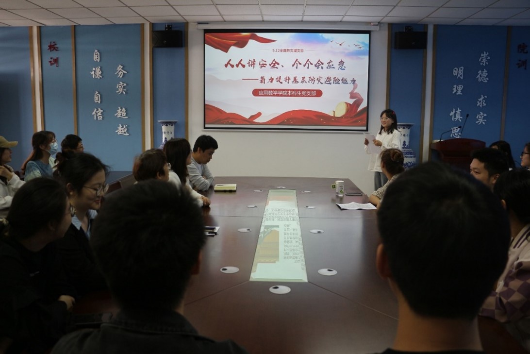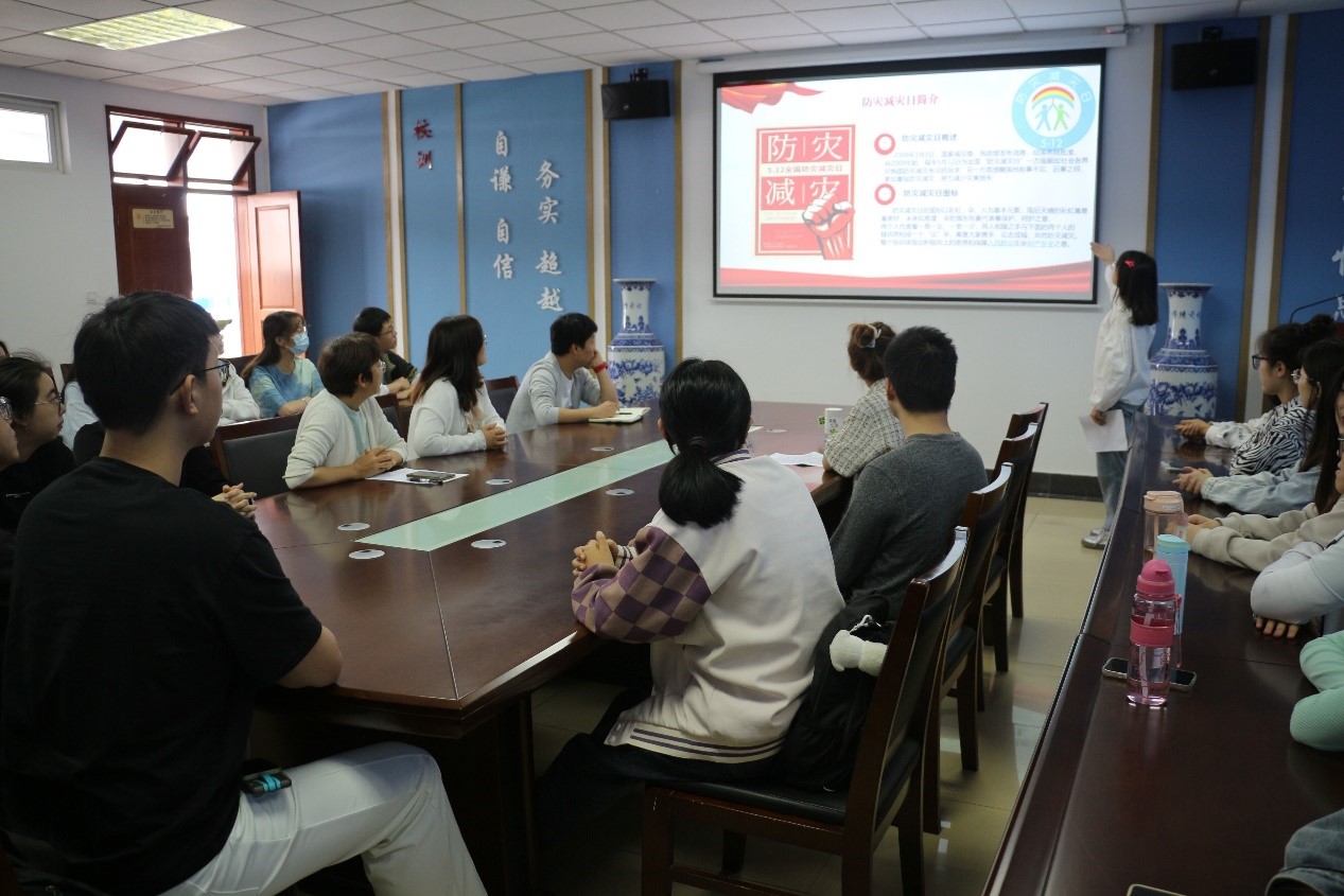 为增强同学们的防灾减灾意识,5月9日上午,我院学生党支部在仙林校区德业楼508会议室开展以“人人讲安全、个个会应急”为主题的防震减灾科普宣讲党日活动。学院党委副书记孙晓、团委书记李攻明、本科生党支部书记卢艳梅、学院本科生党支部全体成员、部分研究生党支部成员及学生代表参加此次活动。