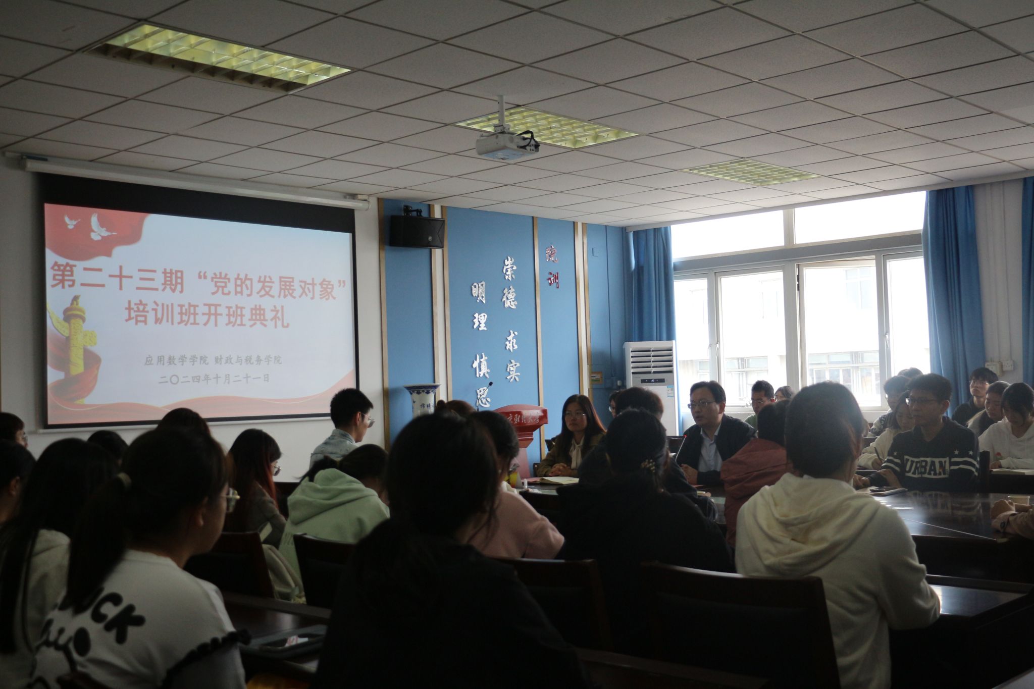 10月21日中午,我院和财政与税务学院联合开展的2024-2025学年第一学期“党的发展对象”培训班开班典礼在德业楼508会议室举行。学校“五老”讲师团成员、教授胡连生,伟德victor1946党委书记殷建新、党委副书记孙晓飞,财政与税务学院党委副书记王翔及全体培训班学员参加了开班典礼。开班典礼由伟德victor1946党委书记殷建新主持。