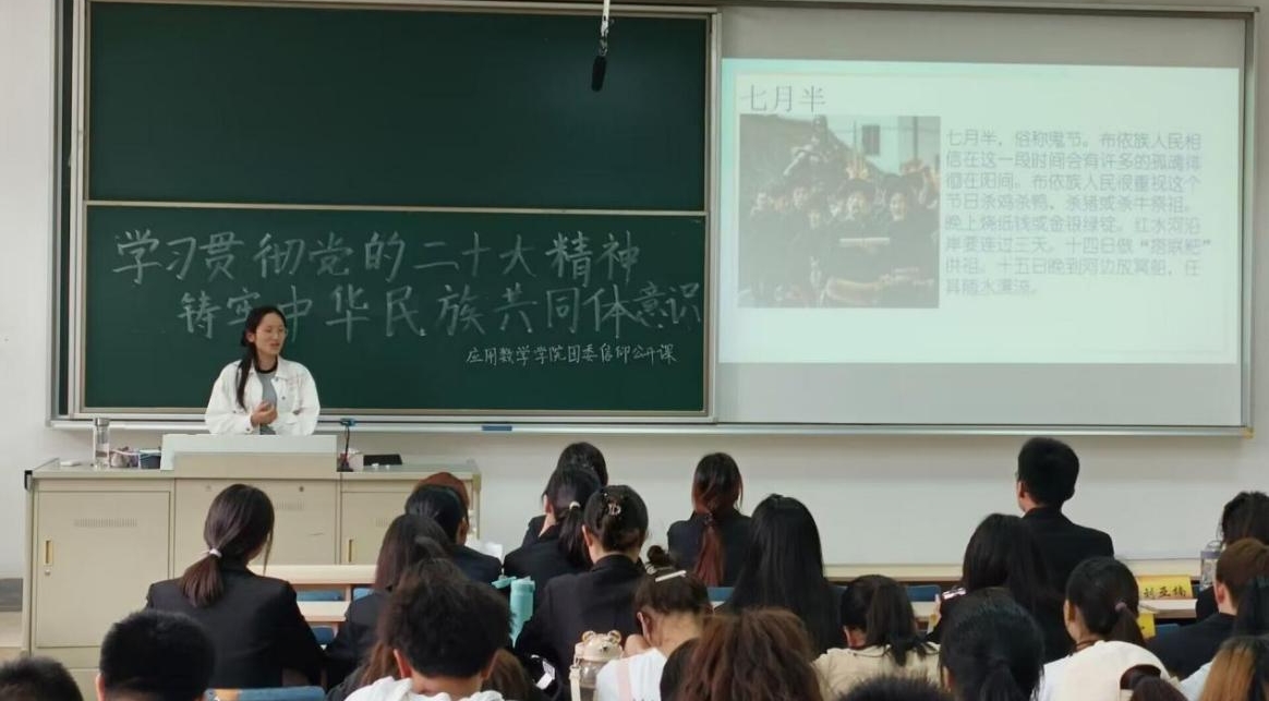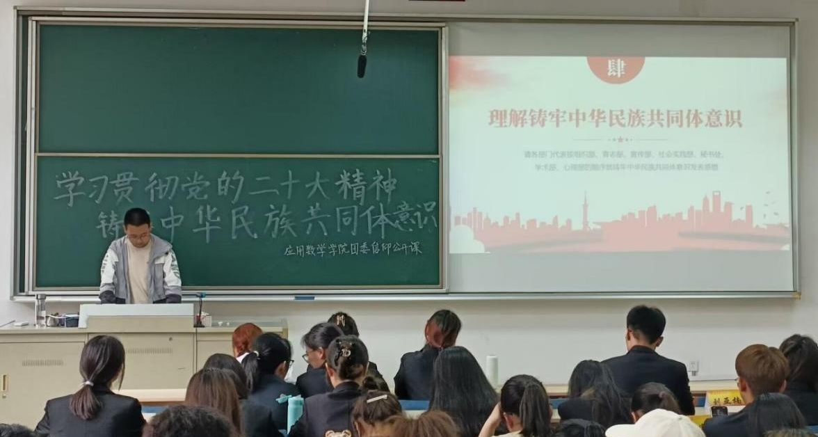 李攻明老师带领同学们共同学习了习近平总书记关于铸牢中华民族共同体意识的部分重要论述,号召全体同学要增强文化认同,牢固树立正确的祖国观、民族观、文化观、历史观,为构筑中华民族共有精神家园贡献力量。我院“红石榴班”代表卢德敏同学受邀向同学们介绍了布依族的分布地区、特色手工服装、传统节日以及民族饮食,诚挚地邀请同学们去她的家乡做客。院团委各部门同学代表分享了自己的学习感悟和体会,纷纷表示要从自身做起,以社会主义核心价值观为指引,铸牢中华民族共同体意识,为推动民族团结进步贡献力量。
