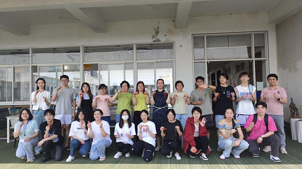 交流结束后,院研究生会开展了以“巧手编织千千结,和谐友爱共相携”为主题的手工编织中国结的活动。院研究生会主席谢秉言同学首先向大家介绍了中国结的由来以及中国结所蕴含着的“全体炎黄子孙心连心,同呼吸共命运”的深远意义。接着,与会老师和同学们一边看中国结编织教学视频,一边把一根根红线绕圈、挑压、打结。师生们相互协作,交流心得与想法,克服挑战,逐渐将一根根简单的红绳变成一个个美丽吉祥、寓意团结和谐的中国结。