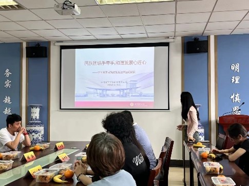 我院研究生党支部代表张文娟同学作“民族团结手牵手,和谐发展心连心”主题宣讲。她详细介绍了党的民族政策及相关法律法规,使大家深刻认识到学习党的民族政策的重要性和必要性,明白巩固和发展平等、团结、互助、和谐的社会主义民族关系是一项长期的任务,也是一项涉及经济、政治、社会等各个领域的系统工程。大家必须要统一思想,像石榴籽一样紧紧拥抱在一起,同心同德、守望相助,同心协力共建美好家园。