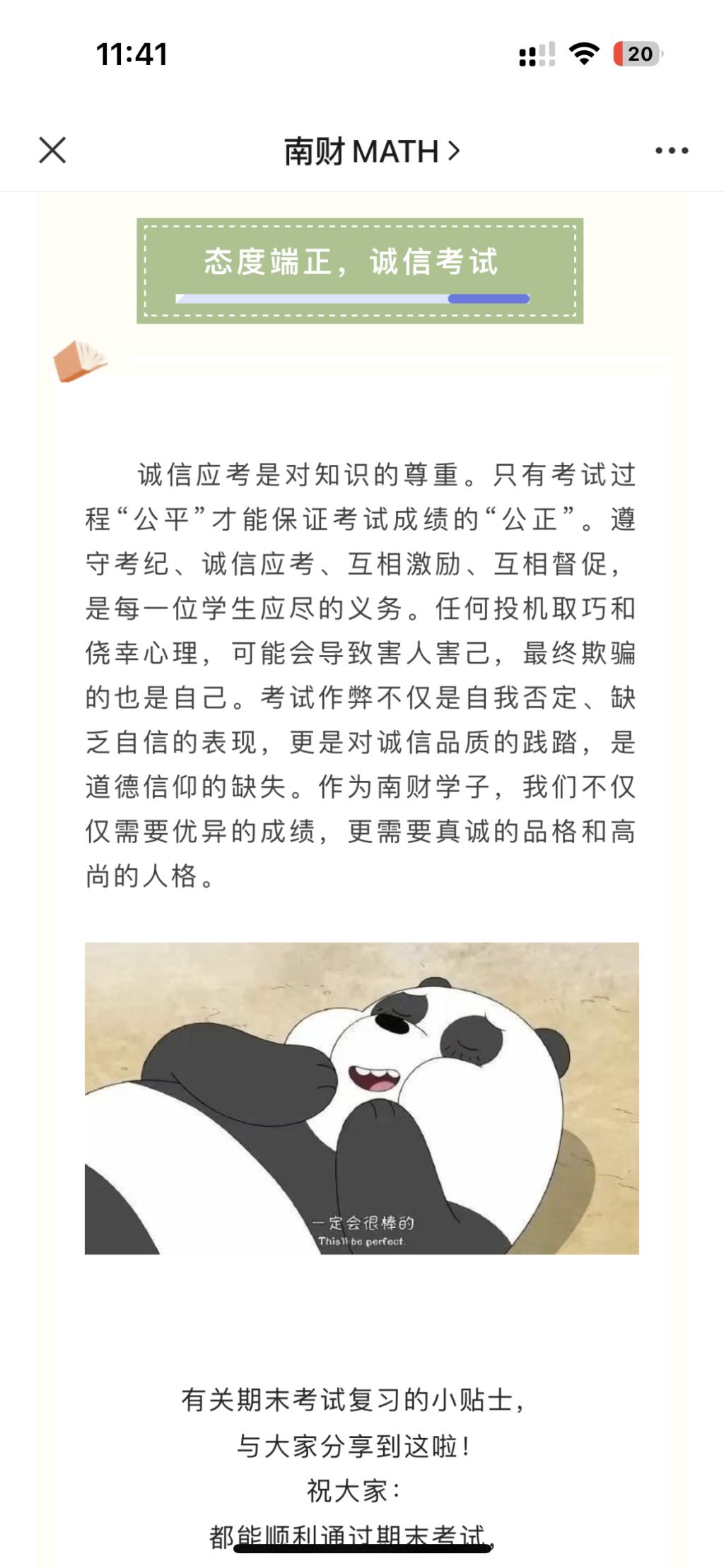 同时,学院通过微信公众号推出《开学期末考,你准备好了吗?》《“乙类乙管”后首个开学季 返校如何做好健康防护》专题,充分发挥融媒体矩阵效应,营造考之以诚,答之以信的诚信考试氛围。