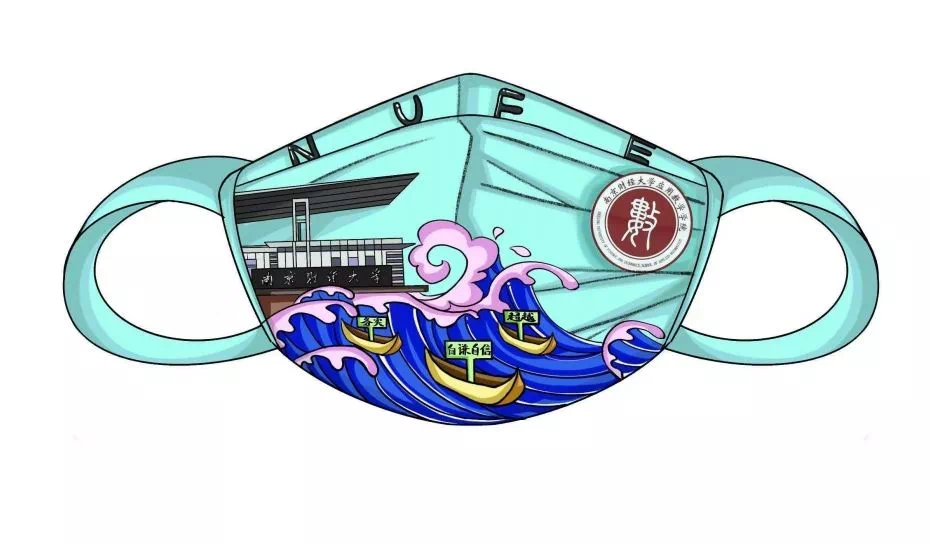 学院学长姐们发挥自己的创意,大显身手,设计出了一款以蓝色为主色调的口罩,呼吁大家提高疫情防控意识,随时佩戴口罩。湛蓝的天空之下,财大校门前,翻涌的海浪中,昭示着“务实、超越、自谦、自信”的帆船正在远航,画面里跳动的蓝色,好似能包容所有的烦恼和沮丧,给你自信与希望。伟德victor1946的院徽,悬于空中,似初生的太阳,光而不耀,绚丽多彩,深深地镌刻进每一位数院人的灵魂。