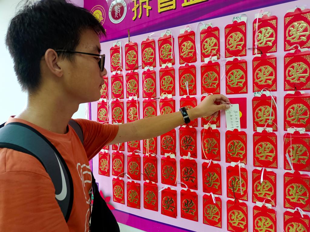每位新生报到之时可以随机取下盲盒墙上的一个红包。每一个红包里面装着一张书签,每一张书签上都有着学长学姐亲手写下的独一无二的祝福语。一张张的书签,一句句的祝福,寄托着学院对每一位新生的期待与祝福。此外,红包中附有随机奖品,新生可随机获得笔记本或者签字笔。愿每一位新生都能执手中笔,绘新篇章!