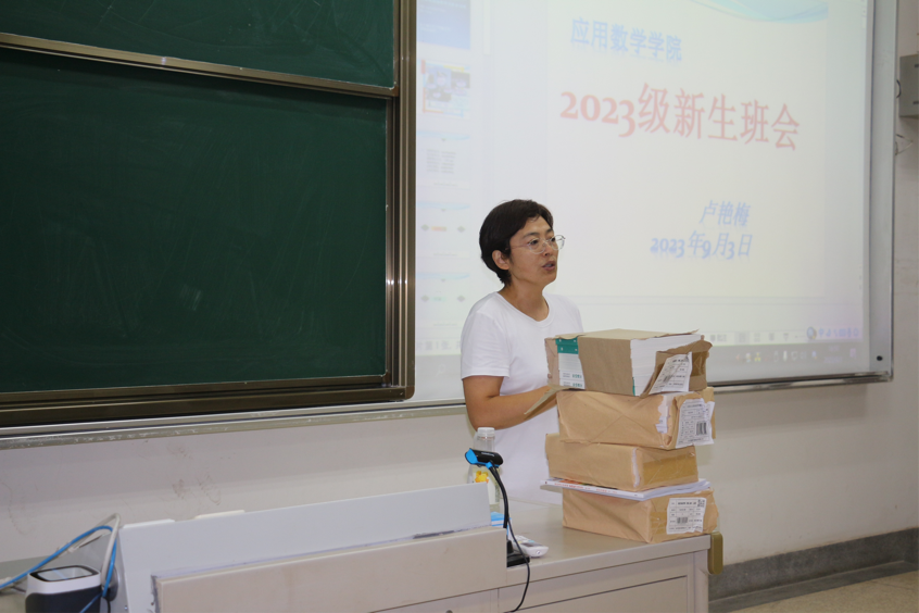 辅导员卢艳梅向新生介绍了我院的基本情况,并表示希望同学们在充满梦想的大学道路上,传承和践行南财数院人的精神,不畏艰辛,脚踏实地,奋发图强。卢艳梅老师还向同学们介绍了校纪校规,并从学习、生活和自我管理三方面提出了建议,希望同学们要自觉遵规守纪,在合理的自我约束中成长成才。最后,辅导员卢艳梅祝愿同学们在大学里能学有所获,学有所成,不负时光,不负梦想,成就卓越的自己。