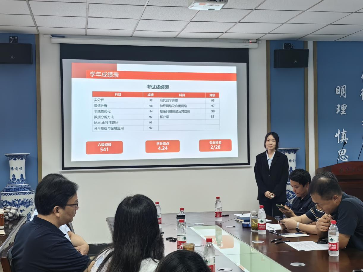 来自数学2101班的中共党员刘亚楠秉持“智圆行方,厚积薄发”的精神,将“选择所热爱,热爱所选择”作为座右铭,在大学三年的时光中不断激励自己,获得优异成绩并在一次次的志愿活动和舞台表演中找到自我,超越自我,最终成为了更好的自己。来自数学2022级的研究生乔姝博学笃志,切问近思,在追逐星辰的路上不断完善自己,通过两年刻苦的学习,成绩名列前茅。答辩会结后,本着公平公正的原则,评审小组将严格筛选,认真评定,确定两名本科生和一名研究生参加学校国家奖学金评审答辩。