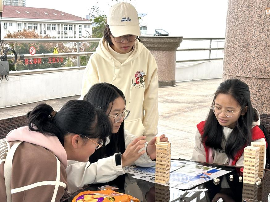 本次活动设置了12个活动站点,站点设置以中国传统的12生肖为主题。参与者需要完成各个站点的挑战任务,以获得相应的生肖印章,集齐全部12生肖印章并留下感言后,便可解锁终极挑战。站点任务包含趣味小游戏、校史文化题、数学思维题等,涵盖了数学基础理论与实际应用场景。在申猴站点,同学们利用自己的数学思维限时解开数学谜题;酉鸡站点的文化知识题则让大家更加深入地了解了校园文化;午马站点的“你说我猜”游戏则更考验同学之间的默契与友谊;辰龙站点的积木搭建游戏展示了同学们的动手能力......在活动中,同学们明确分工、团结协作,不仅重温了校园文化历史,还在解题过程中开动脑筋、积极思考,破解谜题。