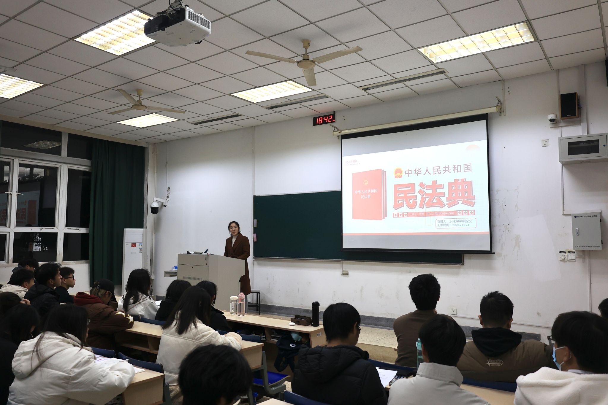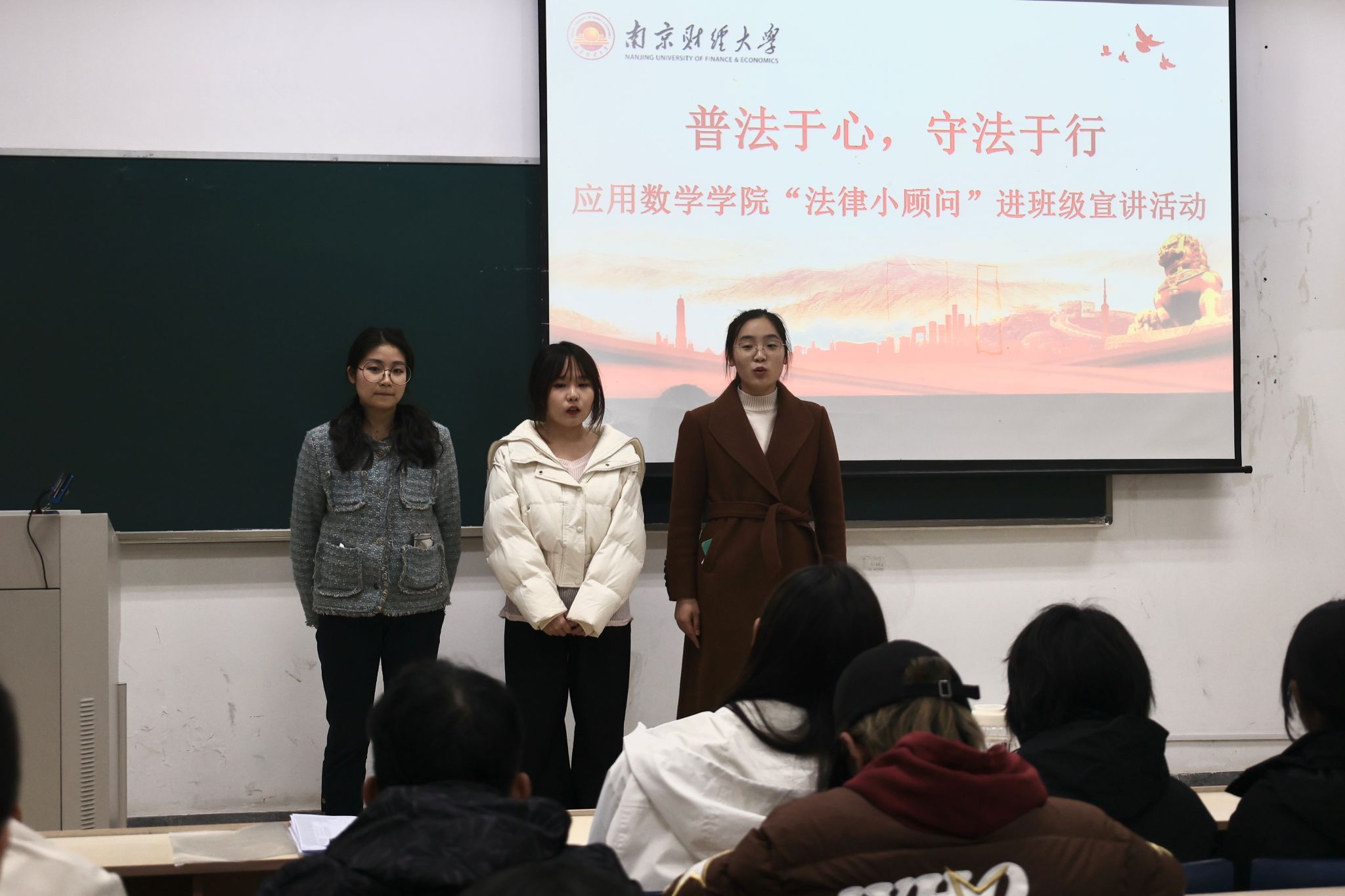 在“宪法宣讲”环节,我院聘请法学院研究生作为学院“法律小顾问”,进班级开展“普法于心 守法于行”普法宣讲活动。三位小顾问围绕习近平法治思想、宪法和民法典,进行了深入浅出的普法宣讲,进一步强化了同学们的法治观念,提升了他们运用法律武器维护自身权益的能力。