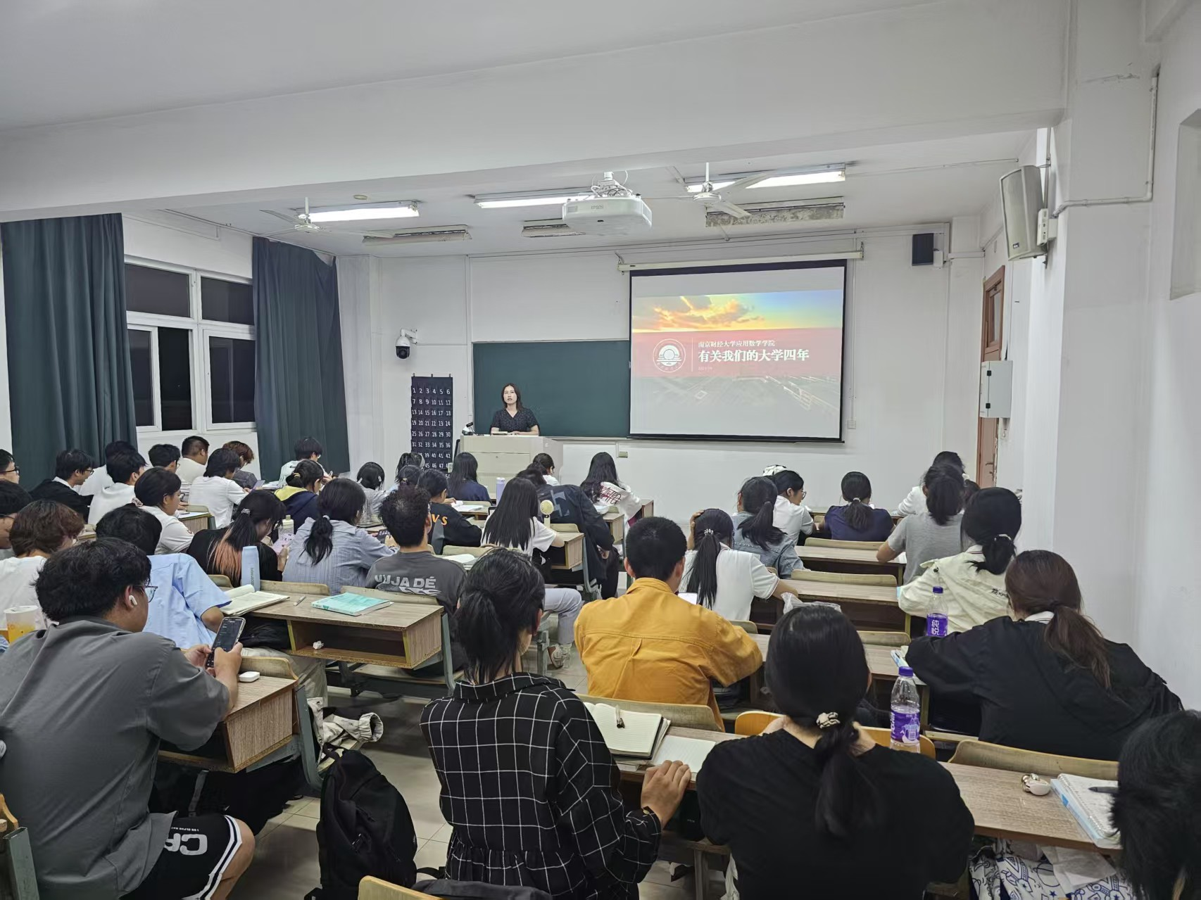讲座围绕相关专业特色,深入解读了学科人才培养目标与行业发展趋势。据介绍,该专业聚焦多学科知识融合,致力于培养具备扎实理论基础与实践能力的复合型人才,毕业生既能在金融、科技等领域施展所长,也可选择继续深造提升学历,未来发展路径多元广阔。同时,讲座还分享了近年学生升学就业整体情况,为学子展现了专业背后的职业前景与市场需求。在生涯规划指导环节,学院提出“分阶段成长”建议:大一注重基础积累与兴趣探索,筑牢学科根基;大二强化专业能力,通过证书考取、实践活动提升竞争力;大三明确发展方向,根据自身需求选择考研、留学或就业赛道;大四全力冲刺目标,完成学业收官与职业衔接。此外,针对不同发展路径,讲座还提供了实用参考,如各类提升竞争力的途径、升学就业中的关键准备事项等,帮助学生避开成长误区。明确大学阶段的学习逻辑与成长路径,科学规划学业目标、实践拓展及职业探索方向,为新生搭建清晰的大学发展框架,助力其夯实成长基础。