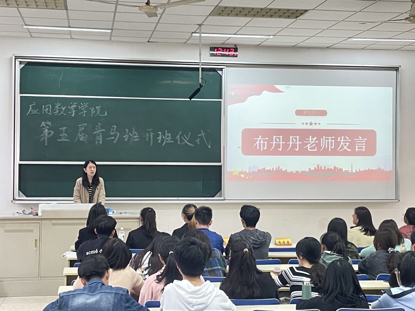 首先,主持人向大家介绍了青马班及其课程安排,要求大家自觉遵守青马班的各项规章制度,认真学习上级党、团组织的最新指示精神和理论成果。接着,学术部部长宣读制度文件,并从目标方向、考核方式以及结业成果三个方面提出具体要求。学院第四届青马班优秀学员代表赵菲凡同学上台与学员们进行经验分享,她倡议大家克服精神价值危机,坚定大学生的理想信仰。最后,布丹丹书记作总结发言,她再次强调了“青年马克思主义者培养工程”对青年干部成长的重要性,希望同学们发挥好骨干作用,在砥砺奋进中不负韶华、勇担使命、铸就璀璨青春。